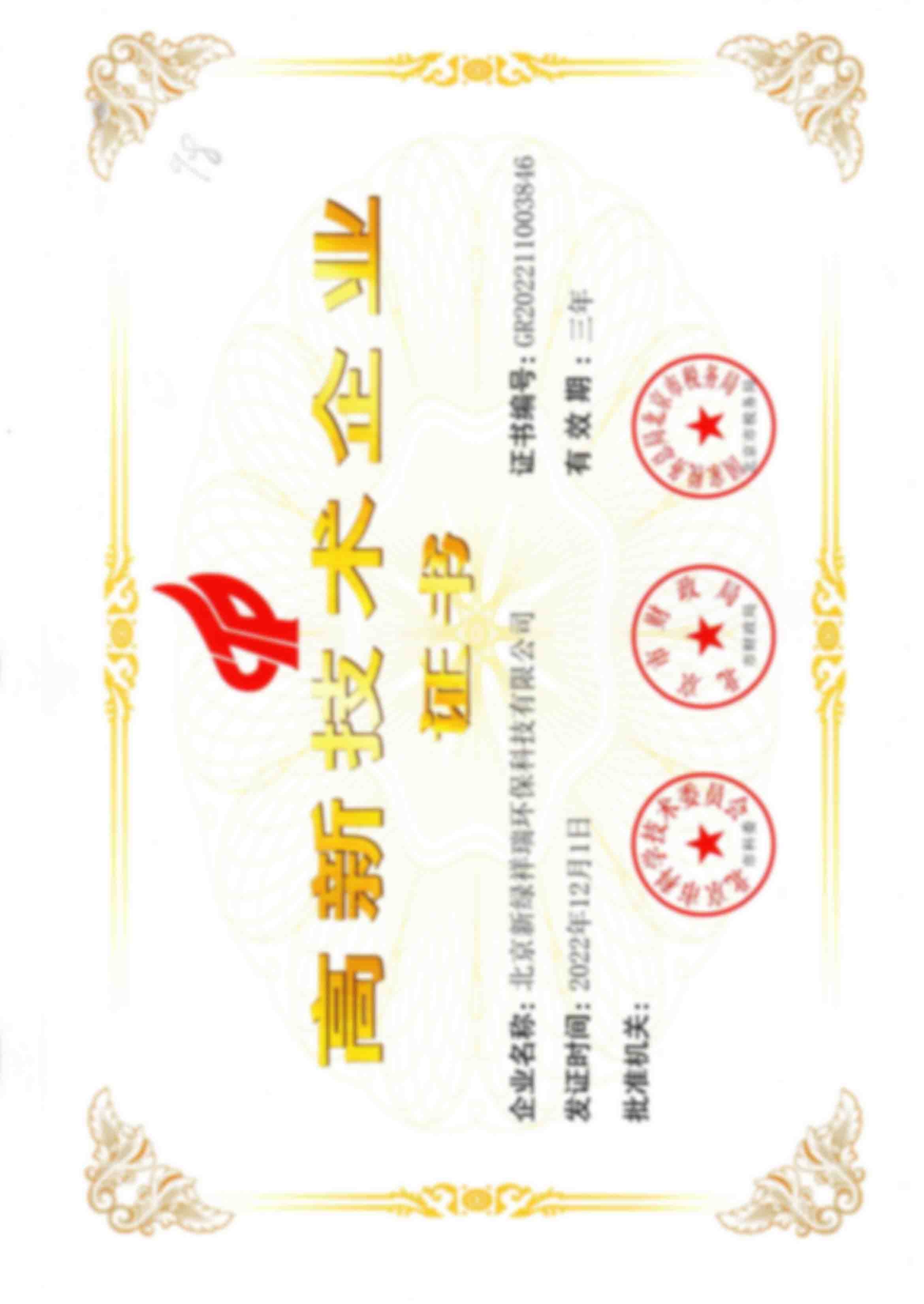 國家高新技術企業(yè)證書